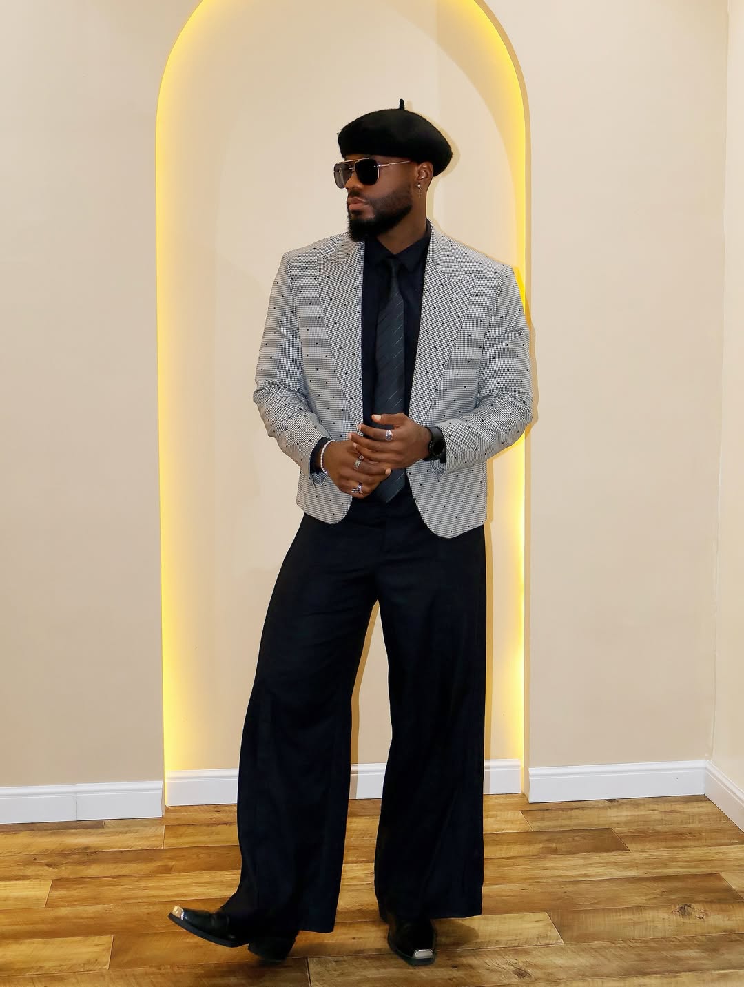 Below are polished yet playful outfit ideas designed to bridge the gap between the boardroom and cocktail hour. Each one reflects how men are dressing right now, offering office Christmas party outfit ideas that feel intentional, fun, and still undeniably appropriate.