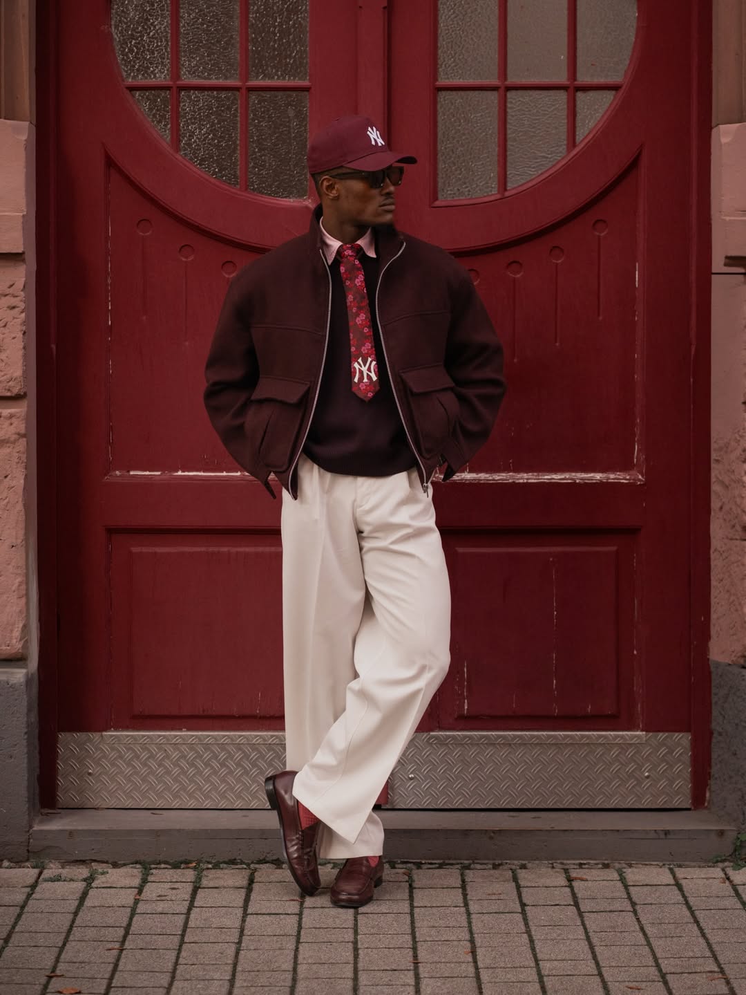 If you’re known as the stylish guy at work, embrace it. A bomber jacket layered over a structured sweater-shirt, paired with wide-leg trousers and clean sneakers, creates a look that’s modern without overshadowing the event. It’s comfortable, expressive, and full of now-era energy. This is the outfit for the man who stays ahead of trends but knows how to translate them for a corporate setting.