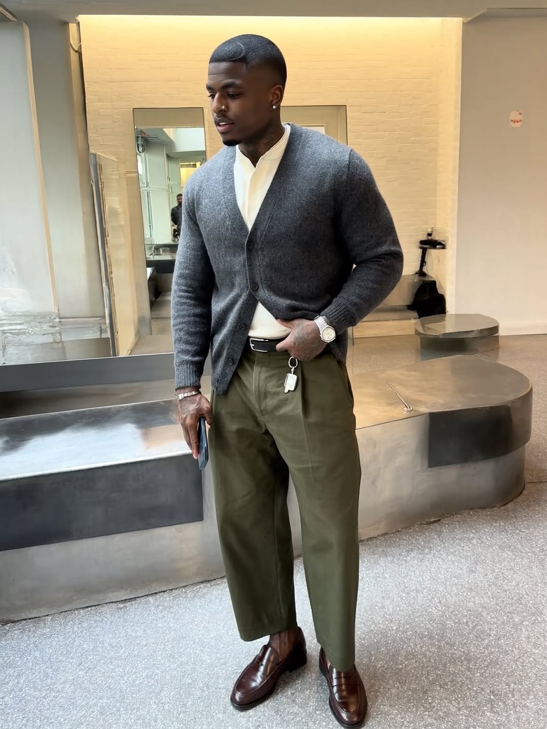 Few styling moves work across all dress codes like a monotone set. Matching pieces in navy, charcoal, olive, cream, or bronze instantly read chic and intentional. The cohesive color palette makes you look polished, while the simplicity keeps things relaxed. For men exploring office Christmas party outfit ideas that feel modern and elevated, this option delivers understated cool.